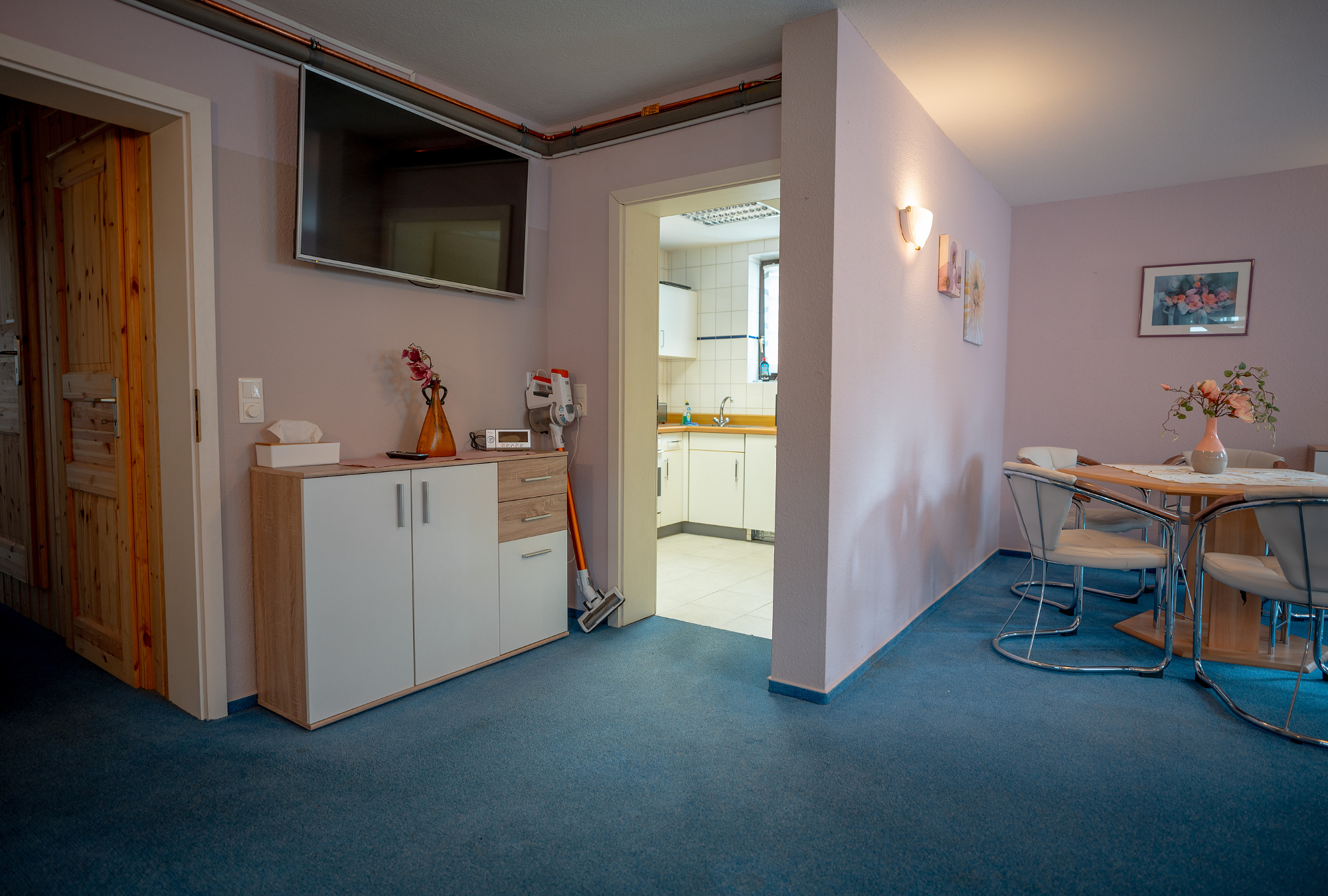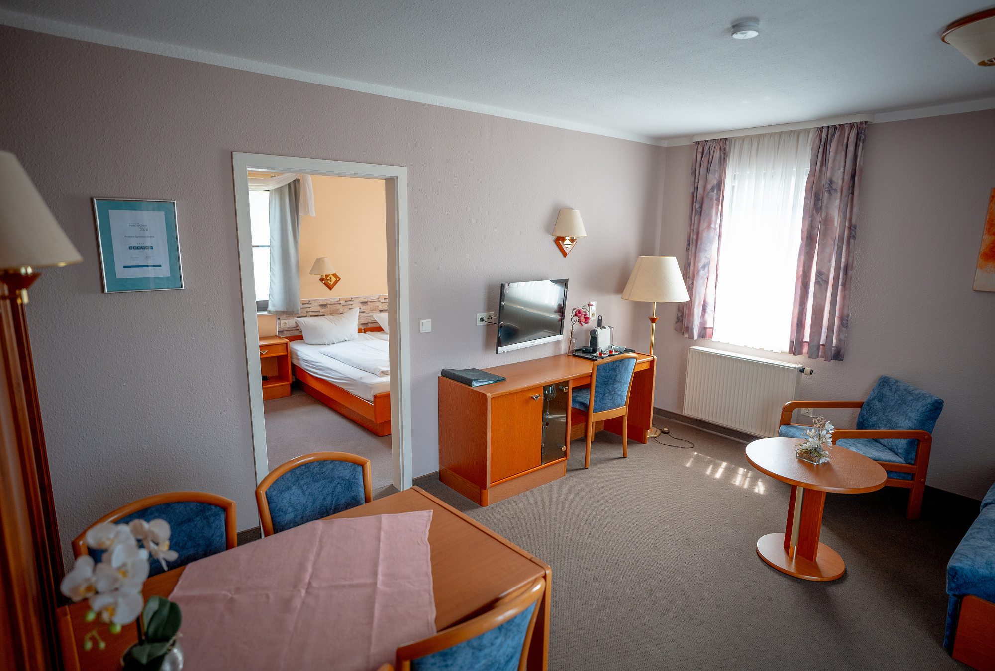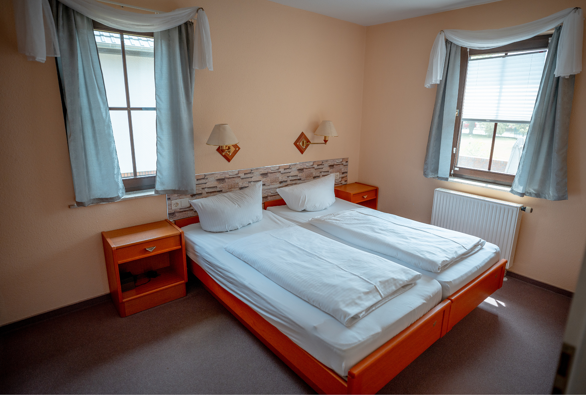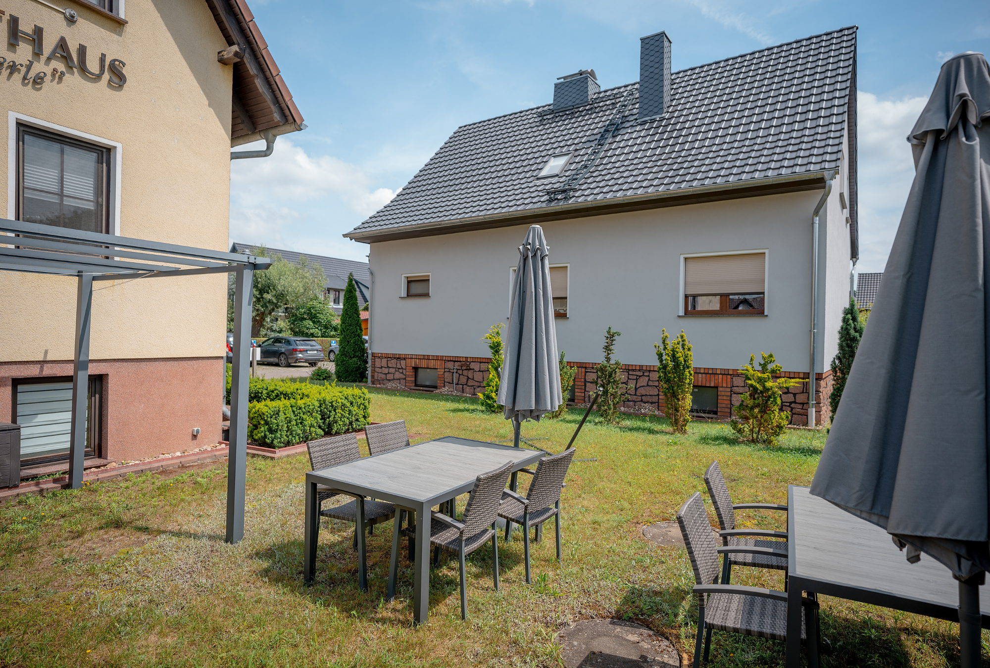 Das Apartmenthaus verfügt über insgesamt vier komfortabel eingerichtete Apartments und eine Komfort-Ferienwohnung. Die Apartments verfügen jeweils über einen separaten Schlafbereich mit Doppelbett und einen Wohnbereich mit gemütlicher Sitz- und Essecke ebenso wie eine Pantryküche. Ein großes Bad mit Wanne und TV, Radio und Telefon ergänzen die Ausstattung. Ein Balkon ist ebenfalls vorhanden.
