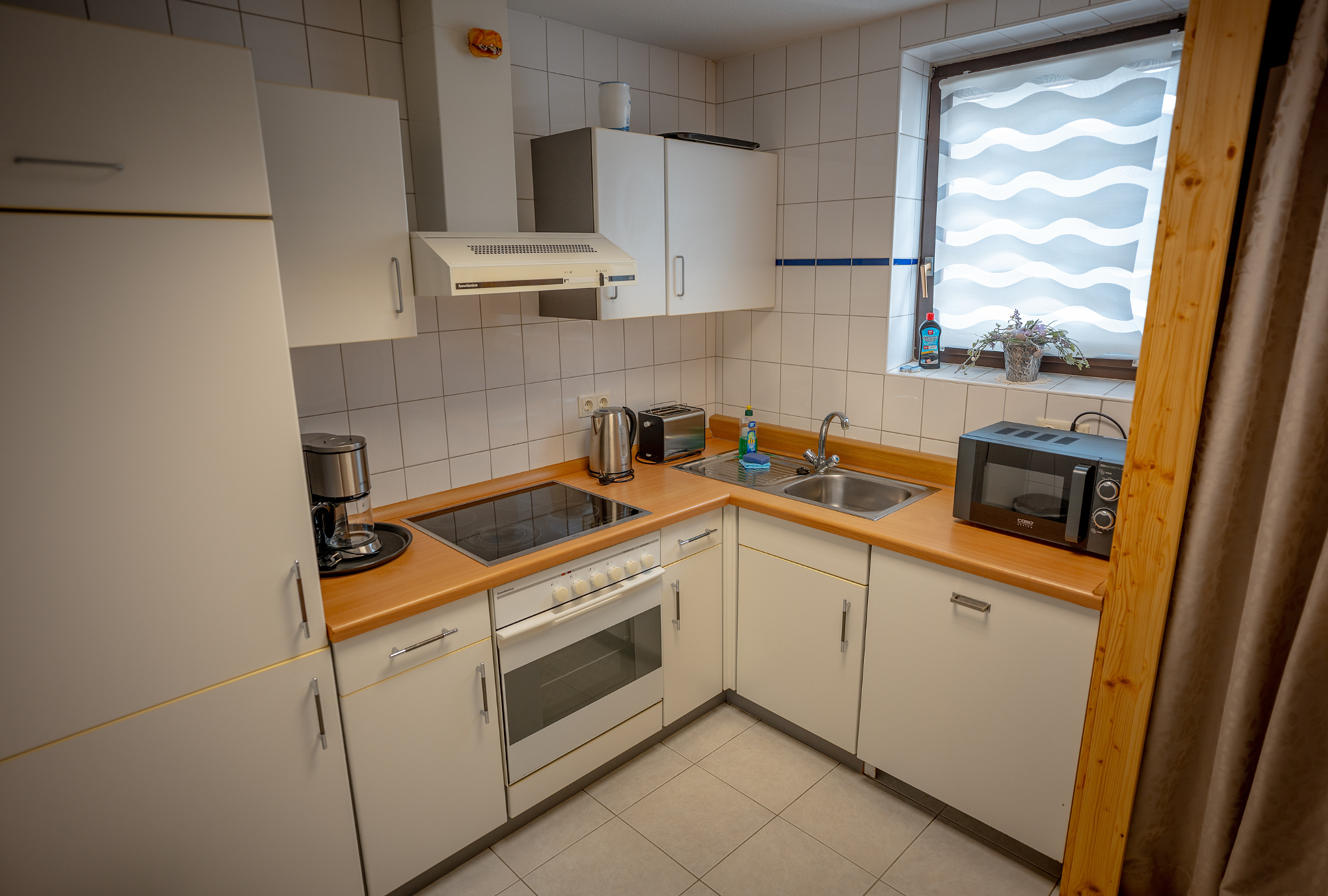 Die Komfort-Ferienwohnung verfügt über zwei separate Schlafzimmer mit Doppel- beziehungsweise zwei Einzelbetten, zwei Bäder mit Dusche, einen Wohnraum und eine voll ausgestattete Küche.