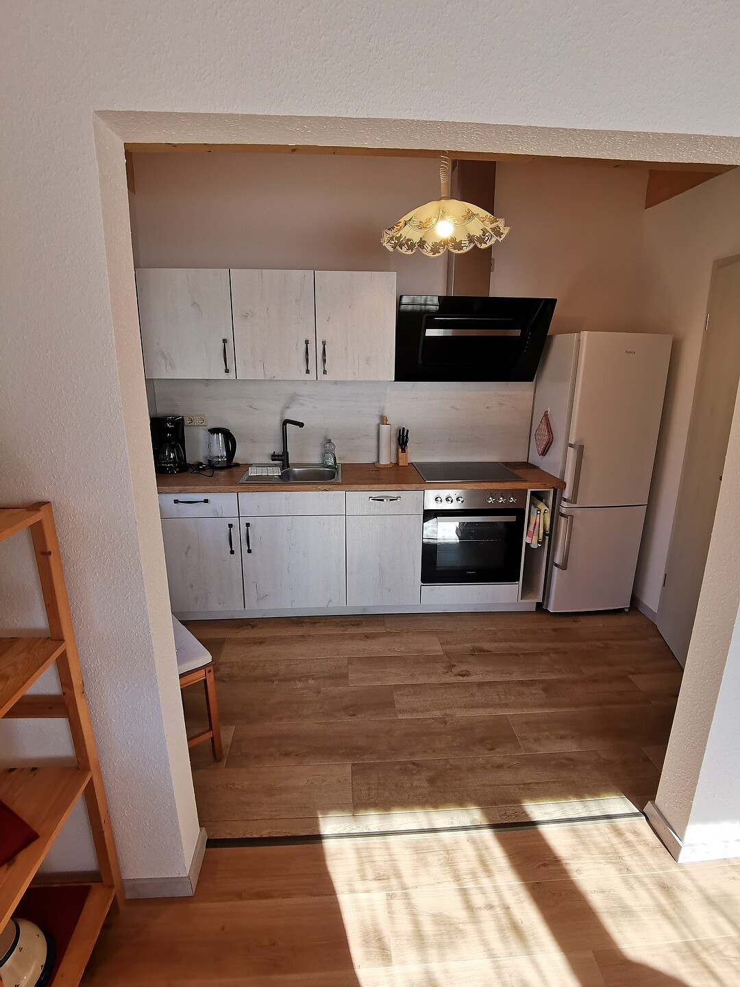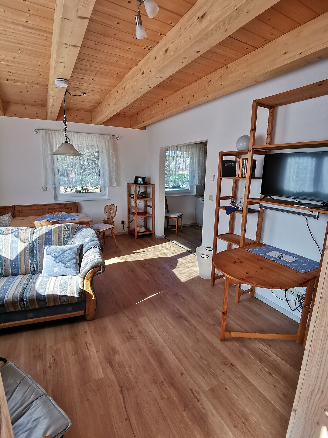 Bad mit Dusche/WC, Wohnzimmer, voll ausgestattete Küche, Fußbodenheizung, Bettwäsche und Handtücher für 2 Personen, Spülmaschine, Waschmaschine, Internet-TV, WLAN