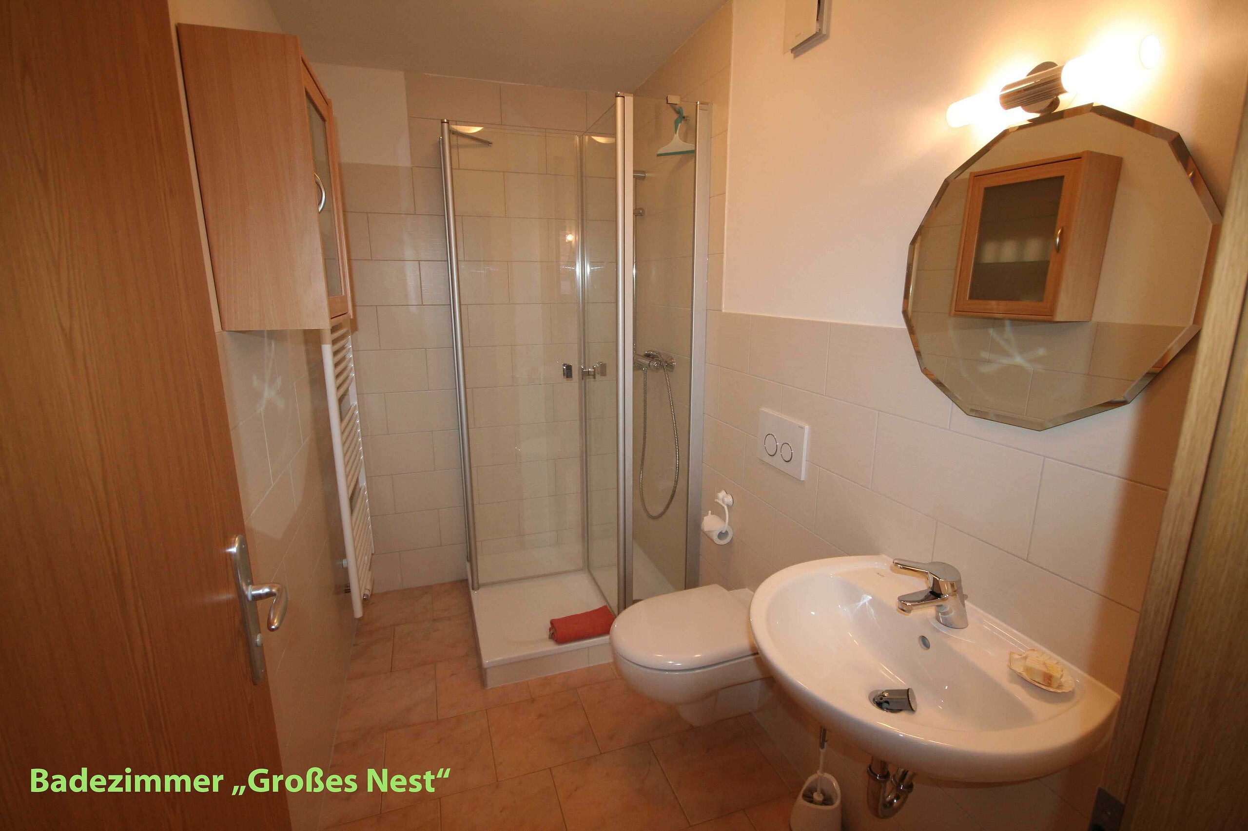 - Großes Nest: 45 m² für 2 Erwachsene und 1 Kind, 1 Wohnraum mit Küche, 1 Schlafzimmer, Bad