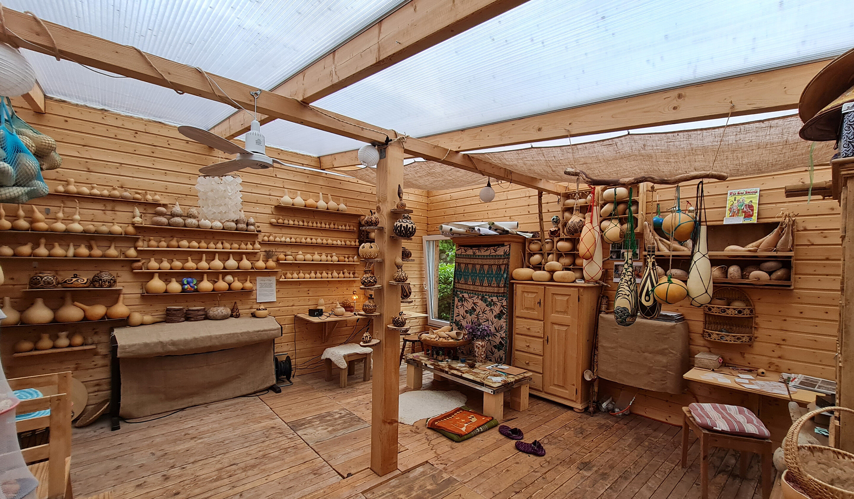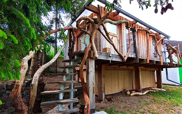 Das Atelier Zauberling ist ein Stelzenhaus aus Holz und wurde von der Ethnologin und Künstlerin Silvia Seidel selbst entworfen.