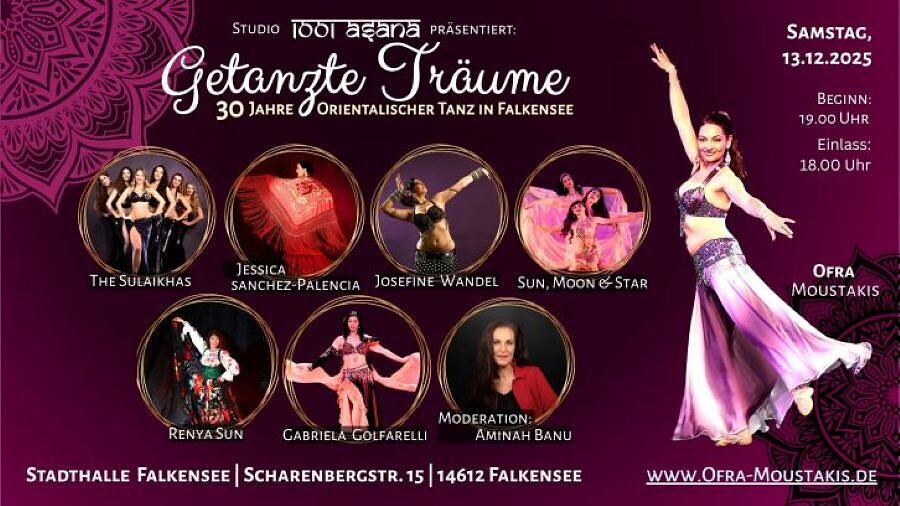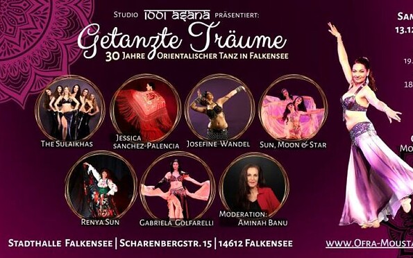 “Mit ”Getanzte Träume" feiert das *Studio 1001 Asana* 30 Jahre orientalischen Tanz - live auf der Bühne der Stadthalle Falkensee.