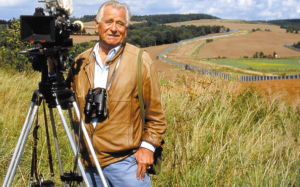 • Heinz Sielmann mit Kamera, Foto: Heinz Sielmann Stiftung, Lizenz: Heinz Sielmann Stiftung