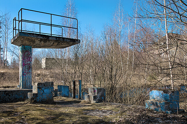 verlassenes Schwimmbad und die seltene Kuckucks Lichtnelke und das Purpurne Knabenkraut.