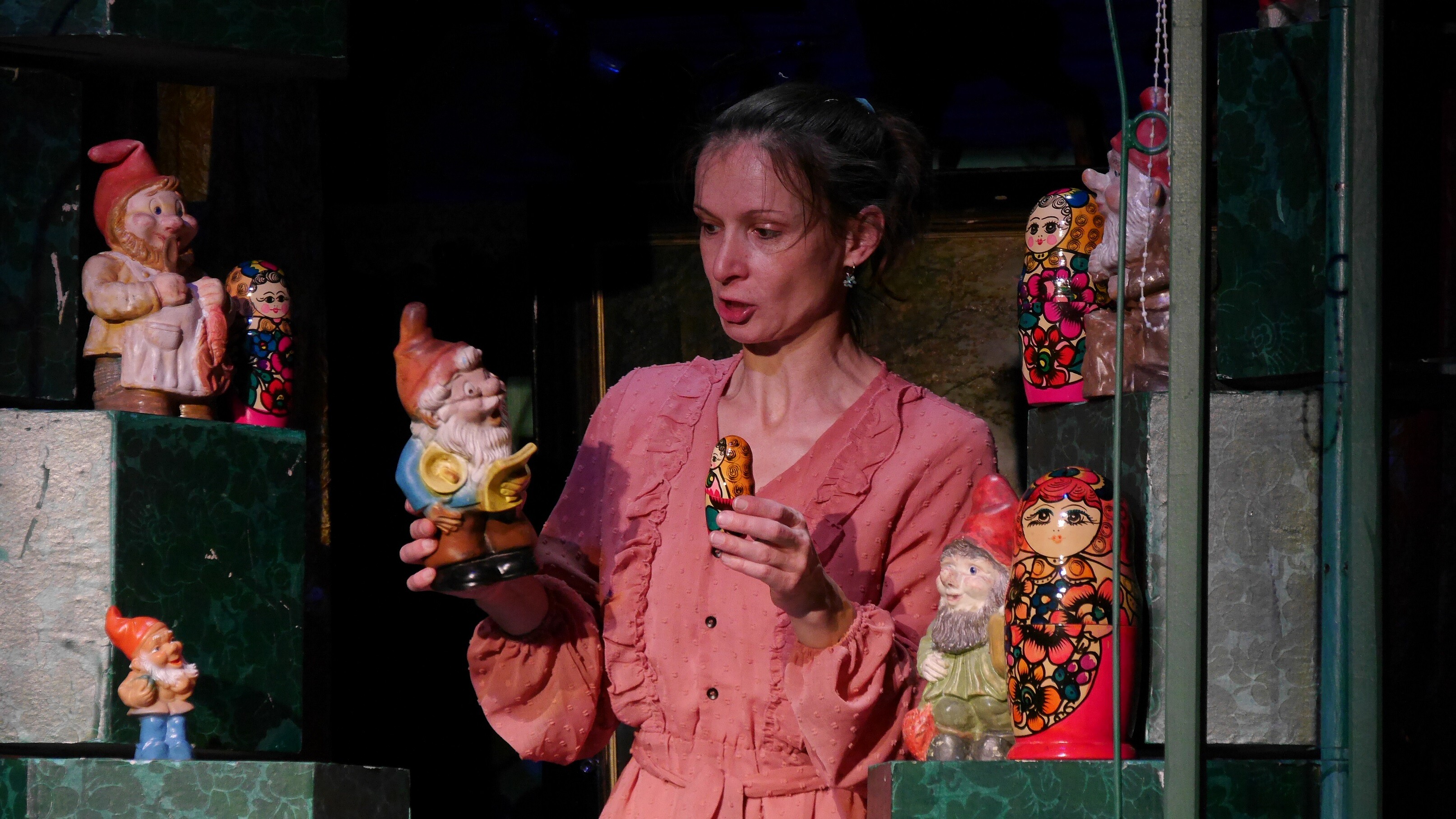 "Spieglein, Spieglein an der Wand, wer ist die Schönste im ganzen Land?" Triumphierend betrachtet sich die Königin im Spiegel, in der Gewissheit, der Spiegel antwortet wie gewohnt: „Frau Königin, ihr seid die Schönste hier!“ Doch dieses Mal erhält sie zur Antwort: „...aber Schneewittchen ist noch tausendmal schöner als Ihr!“. Weshalb ist das Mädchen tausendmal schöner als die Stiefmutter? Weil Schneewittchen jung ist und die Stiefmutter alt? Spricht der Spiegel nur vom Äußeren, oder wird von ihm auch das Innere gespiegelt, die Seele? Ist Schneewittchen ein freundliches, fröhliches Mädchen, ohne Arg, die Königin aber voller List, Bosheit und Neid? Als nun die Königin beschließt das Mädchen loszuwerden, beginnen Schneewittchens Abenteuer… mit dem Jäger, den sieben Zwergen und zum guten Ende mit einem Prinzen, der hoffentlich auch im Herzen so richtig „schön“ ist.
