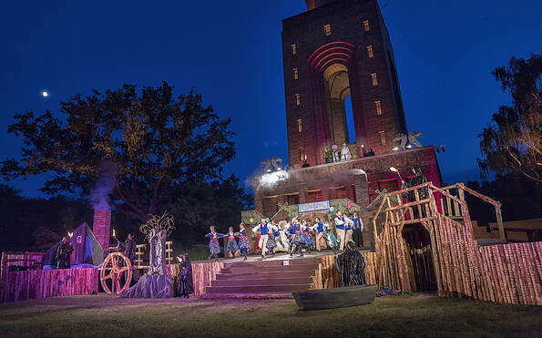 Auch in diesem Jahr erwartet die Besucher der Spreewälder Sagennacht ein musikalisches Openair-Spektakel über Geschichten bekannter sorbischer Sagenfiguren vor der imposanten Naturkulisse des Bismarckturms in Burg (Spreewald).