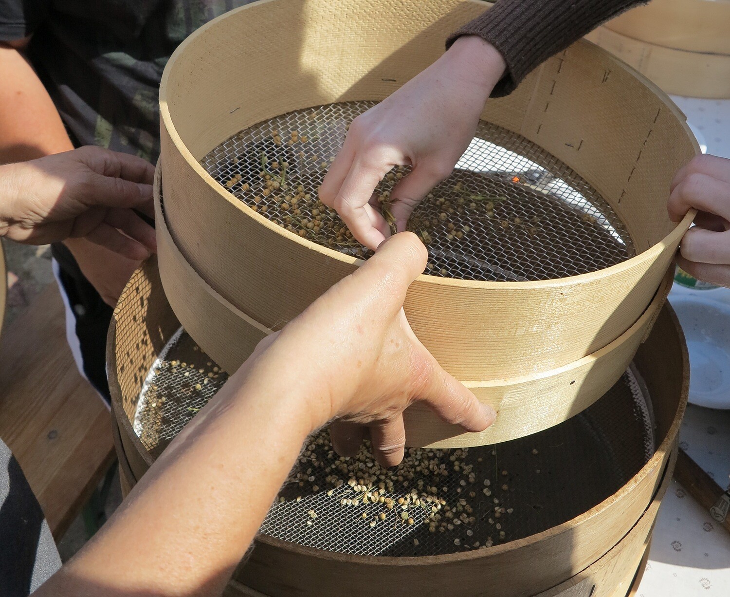 Praktischer Teil: Handernte und Saatgutaufbereitung verschiedener Arten, Einsatz von Handsieben und Saatwippe.