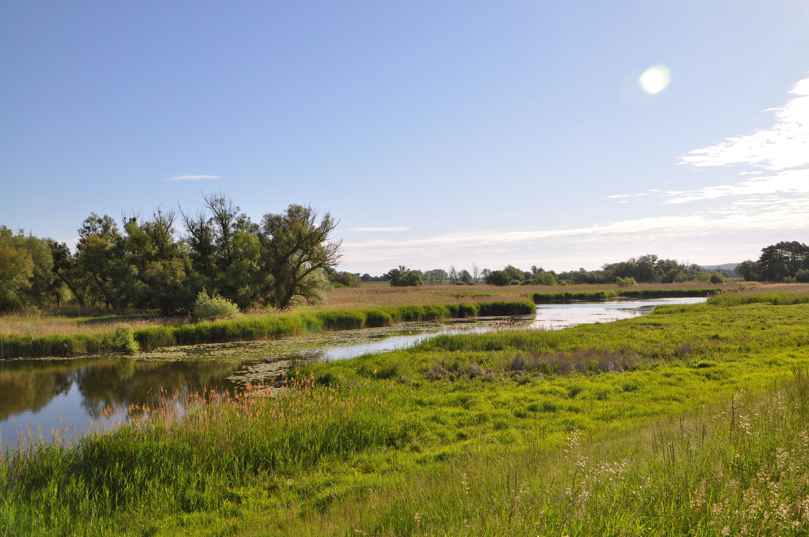 Erleben Sie bei einer ca. 8 km langen Wanderung einen Mittsommerabend im Nationalpark Unteres Odertal. Wir durchwandern einen Polder, der im Winter unter Wasser steht. Im Sommer finden hier seltene Vögel, wie Schwarzstorch, Trauerseeschwalbe und Pirol an wildblühenden Altarmen einen reich gedeckten Tisch vor. Mit Glück lassen sich in der einsetzenden Dämmerung auch Biber und anderes Wild beobachten.